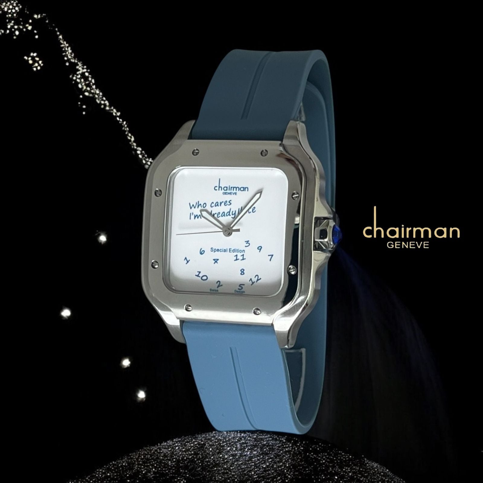 Introducing the Swiss Design Chairman Geneve White Dial Blue Strap Gents Watch. This impeccably crafted timepiece boasts a striking white dial and a stylish blue strap. With its Swiss design and precision, you'll never have to worry about being a minute behind. Make a statement with the Chairman Geneve watch.