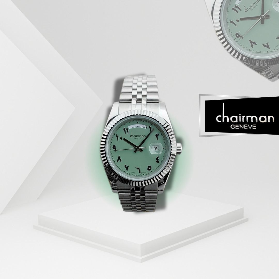 Introducing our Swiss Made Baby Green Mens Watch, featuring an elegant Arabic dial and silver chain strap. This watch is not only stylish, but also boasts superior Swiss craftsmanship for reliable timekeeping. Elevate your look with this timeless timepiece.