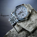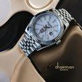 Elevate your wrist with timeless sophistication. This distinguished gents watch features the prestigious UAE Emblem, symbolizing heritage and excellence. The crisp white dial paired with a gleaming silver chain bracelet creates an understated yet commanding presence. The date window keeps you organized throughout your day, while the precision movement ensures reliable timekeeping. Perfect for boardrooms, formal occasions, or everyday wear, this Chairman Geneve timepiece blends classic design with modern functionality. A statement of refined taste and cultural pride.