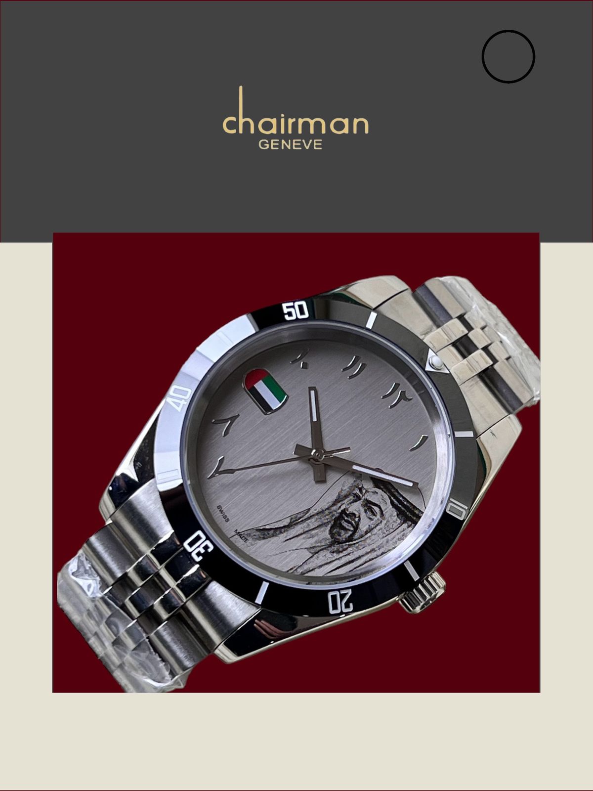 UAE Flag Watch Arabic Dial Chairman Geneve Swiss Made