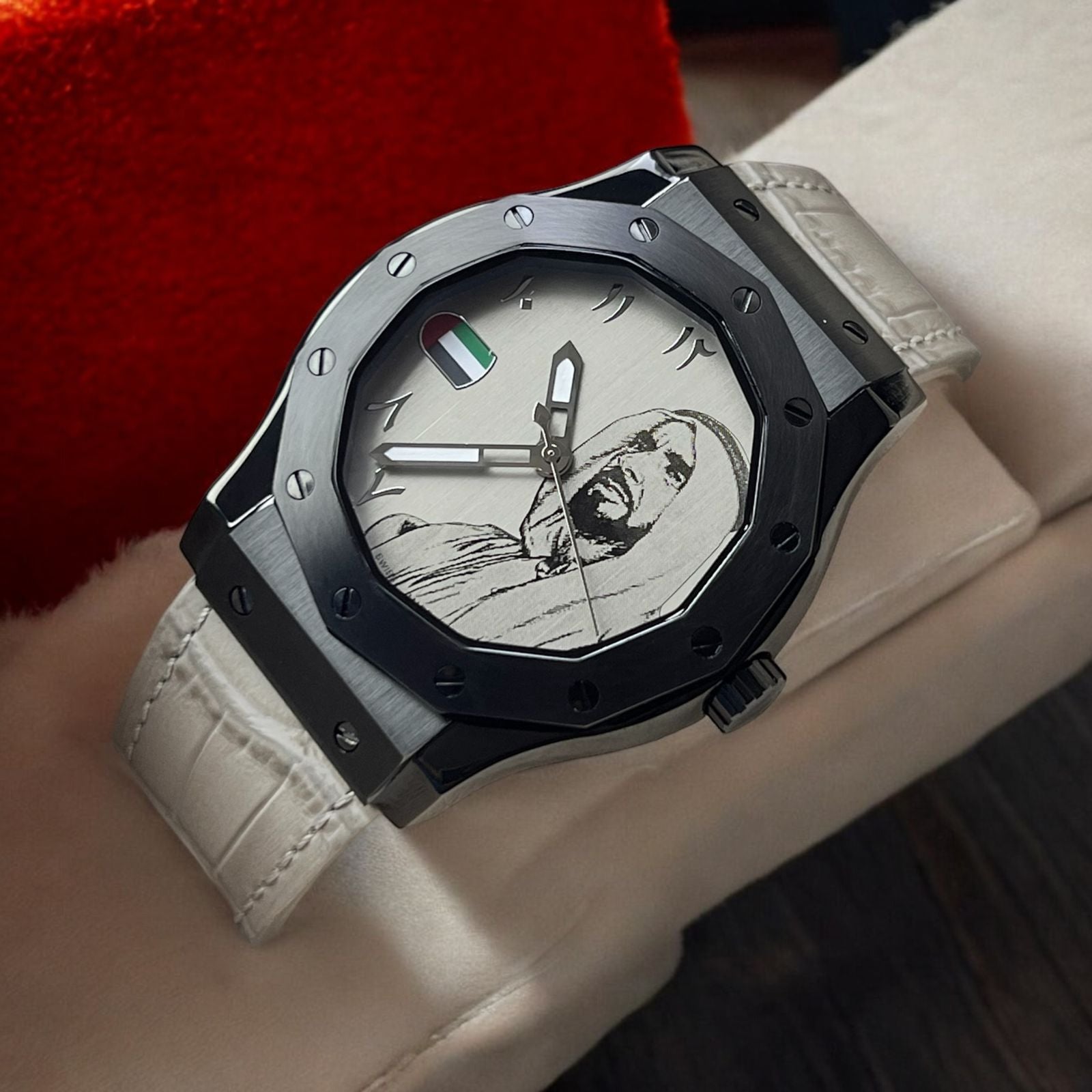 UAE Flag Zayed Gift Watch Arabic Dial White Strap