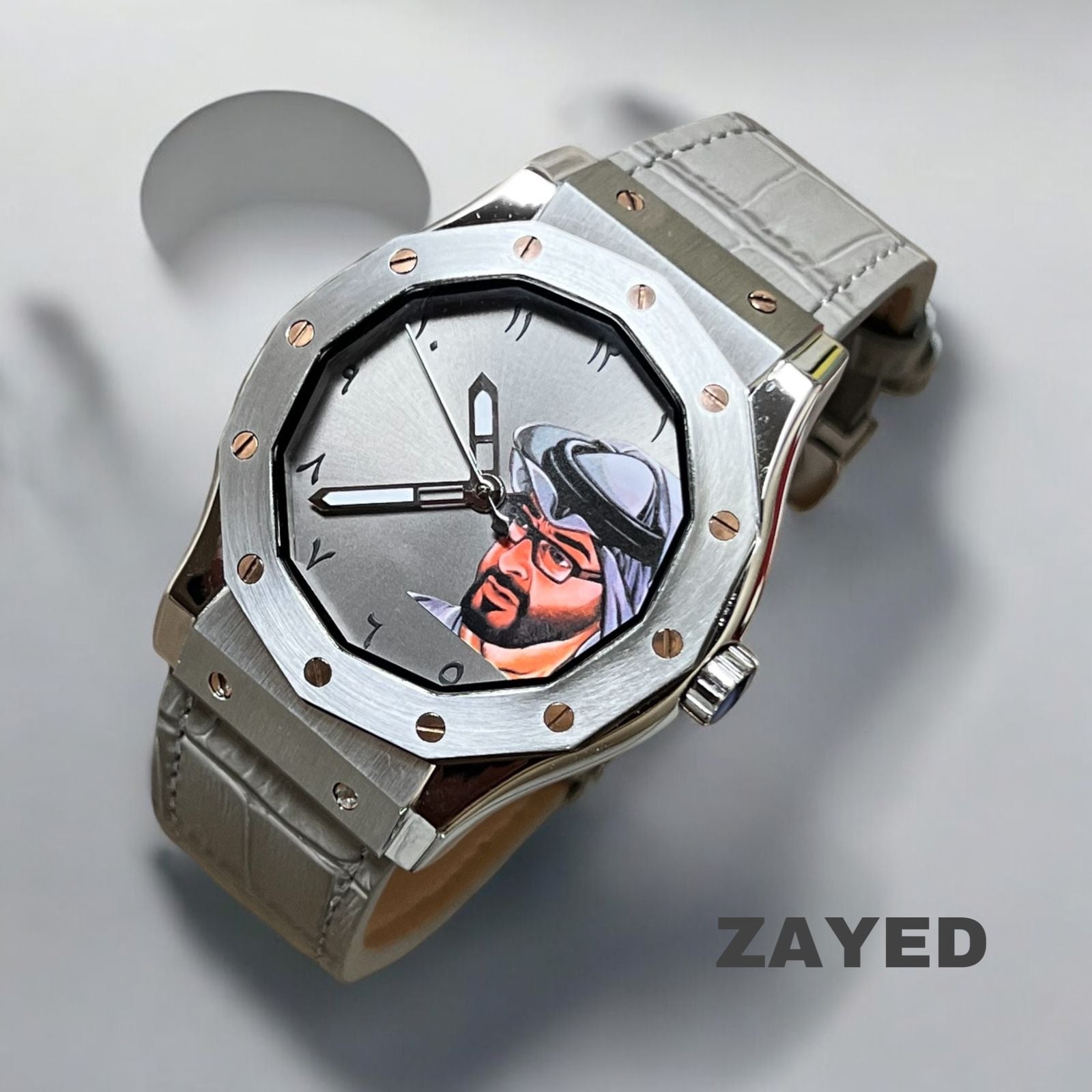 Show off your patriotism and style with our UAE Flag Zayed Watch. Designed with a sleek metal frame, the Arabic Dial adds a touch of culture. The grey leather strap offers comfort and durability. Perfect for everyday wear or as a statement piece.