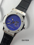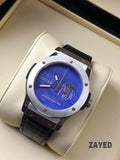 Zayed Limited Edition Blue Dial Metallic Frame Black Strap Men's Watch