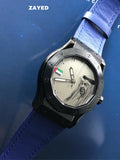Zayed UAE Flag Blue Strap Metallic Dial Men's Watch